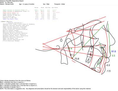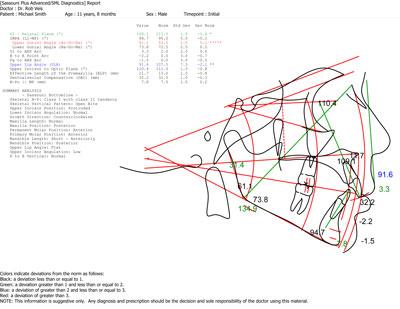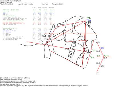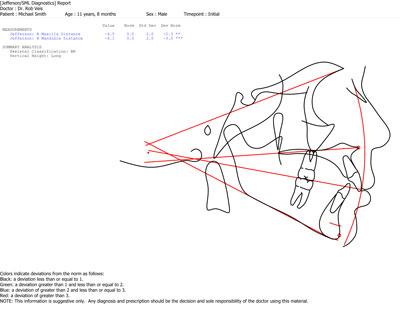 In addition, we have the ability to superimpose the cephalometric tracing directly over the cephalometric film and/or soft tissue profile photograph -- giving you the ability to relate the tracing to both the patient's skeletal and soft-tissue profile. This visual aid enhances your patient/parent consultations and provides additional information for case documentation.