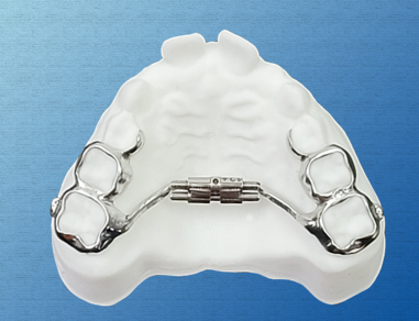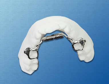 The  Accu3D Metal Printed Comfort Expander (RPE) is utilized to widen the patient’s arch either in pre-treatment or during treatment.