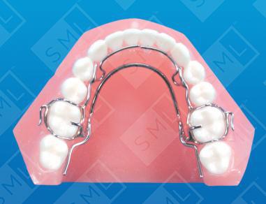 The Basic Mandibular Crozat w/Lingual Springs is used simultaneously with the Maxillary Crozat for lateral arch development. As with the maxillary appliance, auxiliaries can be attached to the basic appliance (as required). Appliance shown includes the added lingual lap springs -- to align the incisors and the distal extensions, thus helping to develop the second molars.