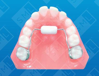 The Blue Grass Appliance is a counter-conditioning device that is particularly useful in the mixed dentition stage of development. A teflon roller is placed in the most superior aspect of the palate. When patients try to suck their thumbs, the roller prevents them from experiencing the satisfaction of suckling. Instead, their tongue spins the roller. More positive than a strict habit-control approach, this presents the roller as entertainment -- a new toy. Note: With all habit appliances, an opposing model and bite relationship are required.