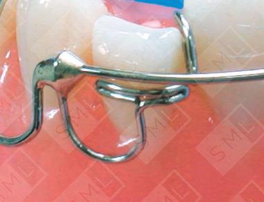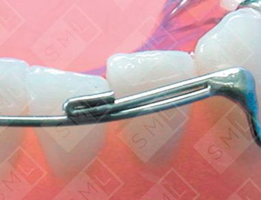 Direct Pressure Springs are soldered to the labial arch wire and can provide a direct lingual movement, a rotation force, or an occlusal force depending upon their placement and adjustment. Three different design modifications are shown here.