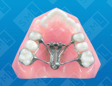 It is typically soldered to bands placed on the first permanent molars and the first bicuspids. Some practitioners prefer to band just the molars. When this is done, it is recommended that the anterior portion of the appliance be secured by placing bonding material over a wire rest.