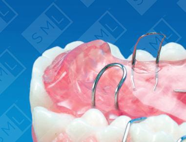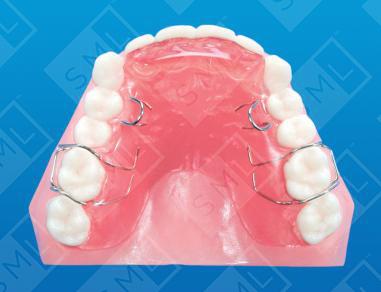 After correction of a patient’s Class II skeletal relationship, this appliance is used as a “reminder” to help the patient function in the forward position during initial retention. Lingual loops have been added to keep the tongue from inhibiting bite closure in the bicuspid region.