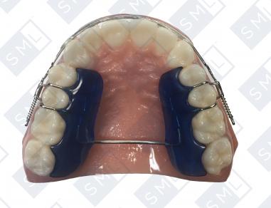 The appliance comes pre-activated. Additionally, the labial bow has an acrylic facing that provides intimate contact with the labial surface of the anteriors.