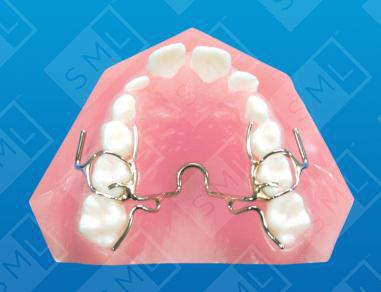 Crozats can be used for treating the young patient in mixed dentition. Shown here, the Crozat Clasps are attached to the primary second molars, with extensions to the erupting six-year molars.The extensions are used to develop the arches by moving the permanent molars buccally. Note: In order to effectively employ these appliances in this situation, the primary second molars must have substantial root structure.