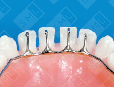 This tongue-thrusting appliance is used to prevent the tongue from exerting a labial force against the lower anteriors. It can be attached to bands on the primary or permanent molars and is often used in conjunction with anterior bracketing when closing anterior open bites. When the bite is closed, the prongs can be reduced in length, but should be kept in until lip seal has been established. In severe open-bite cases, it may be necessary to place prongs like these on a banded bicuspid-to-bicuspid lingual retainer. Note: With all habit appliances, an opposing model and bite relationship are required.