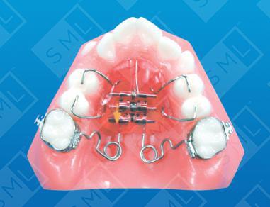This fixed "M" Pendex is used to increase arch width and length. The anterior anchorage needed to accomplish this movement is gained via use of occlusal bonded rests on the pre-molars( just like the Hilgers/Pendex design). The addition of the “M Pendulum Spring” makes this design unique. The spring utilizes an inverted horizontal loop -- placed in the spring half-way between the helix and the .036 lingual sheath on the molar band. The inverted loop leaves the molar roots mesially inclined after distalization, overcoming the standard spring’s tendency to cause cross-bites. A buccal and/or distal uprighting force is placed on the molar roots by simply opening the loop. The result: true bodily movement of the molars. The midline screw can be activated (as needed) to develop the lateral arch width and/or help in correcting posterior cross-bites. Note: When an increase in arch length and width are both required, many practitioners prefer to idealize the position of the molars at the same time that they expand the arch. Others prefer to initiate molar distalization several (2-4) weeks after transverse changes begin. Either way, once these movements are accomplished, the bicuspids and cuspid will have to be brought back in the arch form one at a time using fixed mechanics.