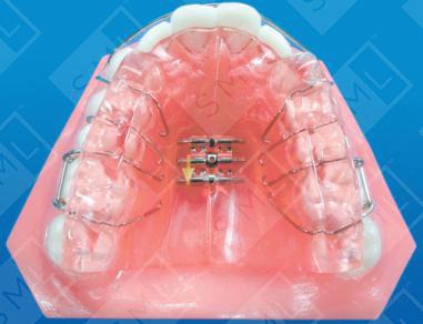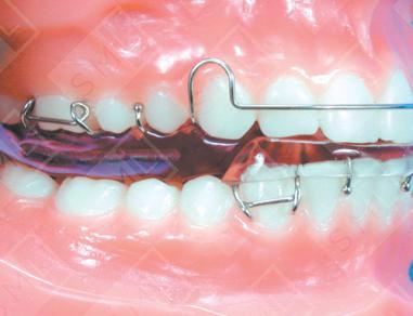 In comparison to standard Clark Twin Block appliance, the Mahony Twin Block has several innovative features believed to enhance skeletal corrections. First, the lower 70-degree incline block is moved forward -- just distal of the cuspids rather than distal to the second premolars. This creates less need for a support phase appliance, because the premolars are allowed to erupt during the initial treatment phase. To help the patient masticate, the lower incisors are "capped" with clear acrylic. Capping the incisors in this manner prevents lower incisor flaring -- and helps to reduce overbite by exerting intrusion forces on the upper and lower incisors. Anchorage and stability of the lower block are also improved by extending the lingual flanges distal of the terminal molar. “C” clasps are often placed around the distal of the terminal molar to further enhance retention. The anchorage unit of the upper block is improved by the addition of a labial bow -- which results in adding the incisors and cuspids into the anchor system. Because he considers Delta Clasps less prone to failure, Dr. Mahony prefers using them for the retention function.