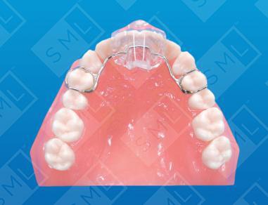 The design of this appliance is similar in concept to the Oakes Splint. By using Crozat Clasps on the bicuspids, this appliance can be reduced significantly in overall size by eliminating the need for palatal acrylic. Since only the lower incisors contact the acrylic anterior block, the patient will not be able to clench due to the nociceptive trigeminal inhibition response. The anterior portion of this appliance can be left flat or built up at the mid-line so that only the lower centrals initially contact the acrylic. Caution - This appliance is meant for night time wear only.