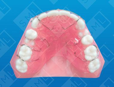 Abnormal exfoliation and eruption patterns can cause erupting teeth to be blocked out of the arch form. When the overall arch length is sufficient, an appliance like the one shown here is ideal to move the bicuspids, allowing the submerged teeth to erupt. This example also illustrates the proper use and placement of the retention components needed for this active appliance. Note that the labial arch wire used here is of the “Reverse Hawley” design. This affords cuspid support without having cross-over wires distal to the cuspids. As a result, the right bicuspid can be moved into complete contact with the cuspid. Likewise, a “C” clasp (possibly used in conjunction with a composite ledge) is used on the left first molar to permit complete distalization of the left second bicuspid. These are all critical design considerations in this particularly treatment scenario.