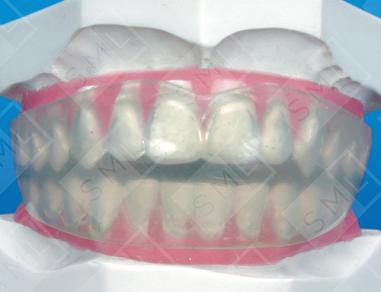 The Positioner is used primarily to help "settle-in" the occlusion at the end of a full-fixed bracket and band case. Fabricated from flexible plastic (silicone or rubber), this retaining appliance is typically used to create a slightly over-treated Class I relationship. The appliance is fabricated after the individual teeth are cut from a current set of models and reset into the ideal relationship. Impressions for this appliance can be taken with brackets still in place. This will allow you to deliver the appliance immediately on the same day that you plan to remove your bands and brackets. Upon delivery, the patient is instructed to clench into the Positioner on a scheduled basis. This action not only allows for a gentle settling-in of the individual teeth (into their correct positions), but also establishes a correct interarch relationship. Various colors (as well as the standard clear material) are available for this appliance. Note: A specific “Set-up and Positioner Prescription” form is available upon request.