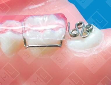 The Removable Ectopic Distalizer is quite effective in distalizing an ectopically erupting molar when there is insufficient vertical clearance to use the Fixed Ectopic Spring Distalizer. Vertical clearance is achieved by adding occlusal coverage to the removable appliance. Activating the finger spring soldered to the molar clasp places a positive distal driving force against the button that is bonded to the occlusal of the second molar. Typically, this appliance needs to be worn for a relatively short period of time.