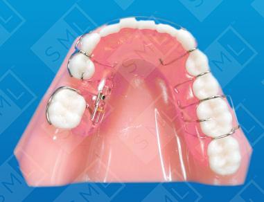 Early loss of primary teeth can allow a first molar to drift mesially and block the eruption of the bicuspids. The Removable Space Regainer uses an expansion screw to distal drive the molar, regaining the space needed for the eruption of the bicuspid. Adjustments are made 1/4 turn once each week (with wrench provided). There is no occlusal rest on the first permanent molar. This will allow the molar to upright as it moves distally. Note: When distalizing a first molar, it is important to take an x-ray of the second molar to make sure distalization will not cause its impaction. If retention is a concern...when using “C” Clasps (shown), consider the use of bonded composite ledges on the buccal of the clasped molars.