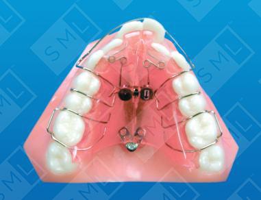 Many patients exhibit a V-shaped or Gothic arch form as a result of an abnormal habit or an airway problem experienced during development. When this occurs, the arch may only be narrow in the anterior region. Therefore, use of an expansion appliance that expands equally in the posterior and anterior region would be contra-indicated. To overcome said problem, the Swing-Lock Expander has been designed with an expansion screw and a posterior hinge. It gains anterior space without disturbing the posterior bite relationship, and since the expansion screw and the hinge are separate pieces, it is possible to keep the palatal acrylic thickness at a minimum and thus ensure greater patient comfort. Be advised that this design is only effective for an expansion of up to 4mm. If additional expansion is required, fabricate a second appliance or utilize an appliance with a larger fan screw. Note: As in all removable expansion appliances, activation of any of the springs should take place after space has been created via the expansion process.
